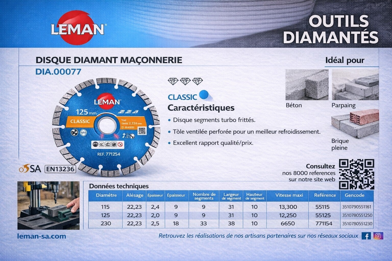 Disque Diamant Maçonnerie - 125mm - 230mm Classic Leman