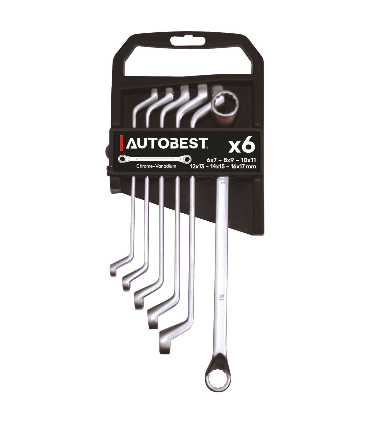 Ce jeu de clé polygonales au chrome-vanadium finition satinée, permettra le démontage des vis, écrous, et boulons de dimensions métriques de dimensions : 6 x 7 - 8 x 9 - 10 x 11 - 12 x 13 - 14 x 15 - 16 x 17 mm